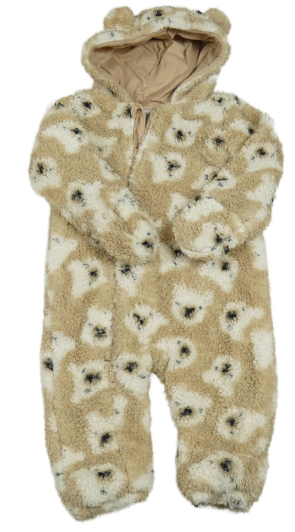 Béžová chlupatá zateplená kombinéza s medvědy a kapucí F&F