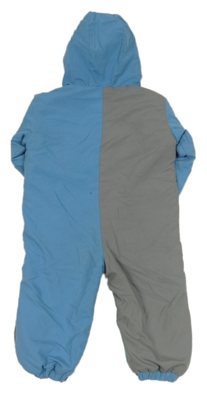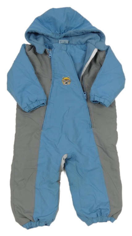 Modro-šedá šusťáková zimní kombinéza s pejskem a kapucí