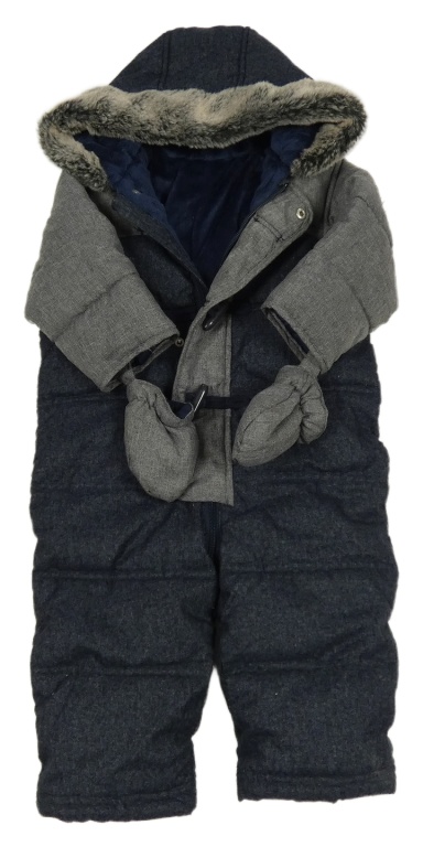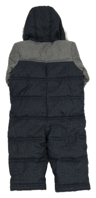 • Tmavomodro-šedá melírovaná šusťáková zimní kombinéza s kapucí + rukavice Mothercare