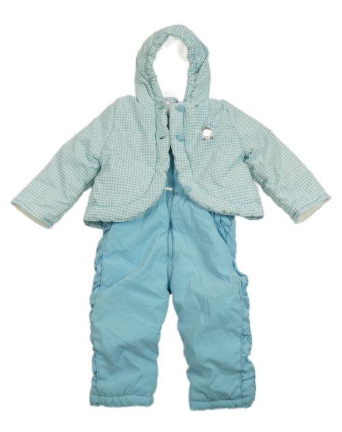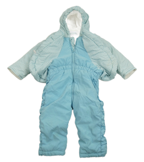 Modro-bílá šusťáková zimní kombinéza s ovečkou a kapucí