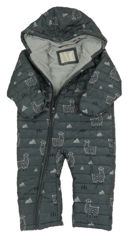 Šedá šusťáková prošívaná zimní kombinéza s ovečkami a kapucí John Lewis