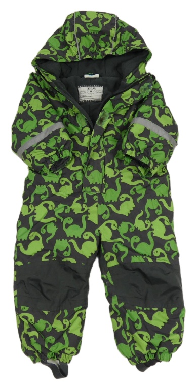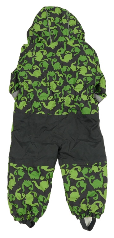 Šedá šusťáková zimní kombinéza s dinosaury a kapucí Topolino
