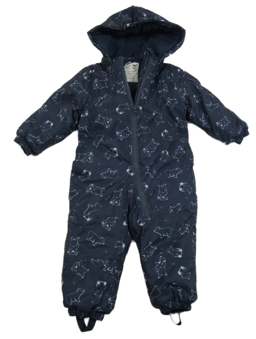 Tmavomodrá šusťáková zimní kombinéza s medvědy a kapucí Dopodopo