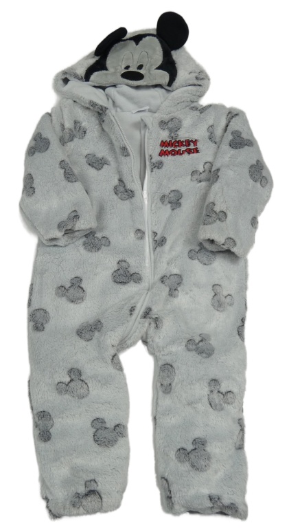 Světlešedá plyšová zateplená kombinéza s Mickey a kapucí Disney