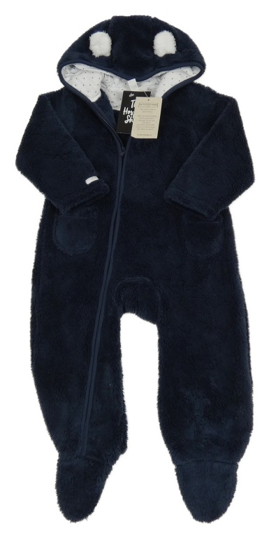 Nové - tmavomodrá plyšová kombinéza s kapucí