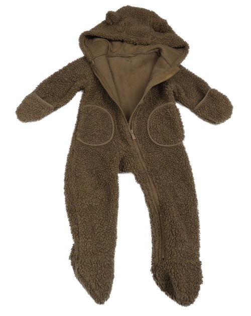 Hnědá huňatá kombinéza s kapucí s oušky PRIMARK