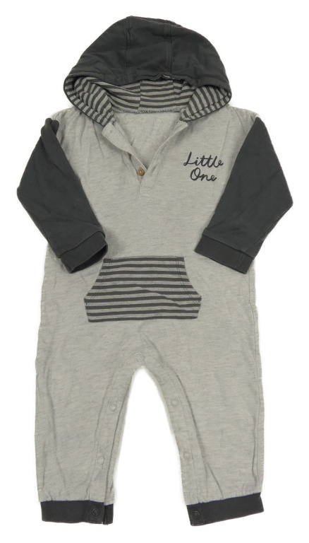 Šedo-tmavošedá melírovaná tepláková kombinéza s nápisy a kapsou a kapucí Tu