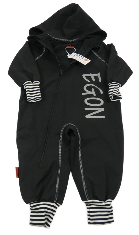 Nové - Černá softshellová kombinéza s nápisem a kapucí