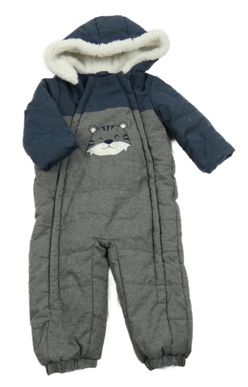 Šedo-tmavomodrá melírovaná softshellová zimní kombinéza s tygrem a kapucí C&A