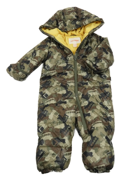 Khaki-hnědá vzorovaná šusťáková zimní kombinéza s kapucí
