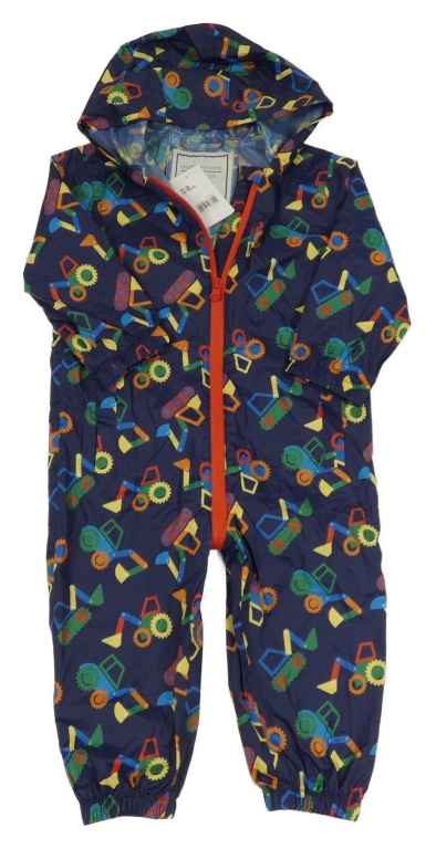 • Nové - tmavomodro-barevná šusťáková nepromokavá kombinéza s traktory a kapucí Mothercare