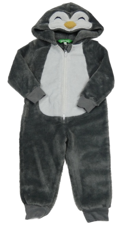 Šedo-bílá plyšová kombinéza s kapucí - tučňák