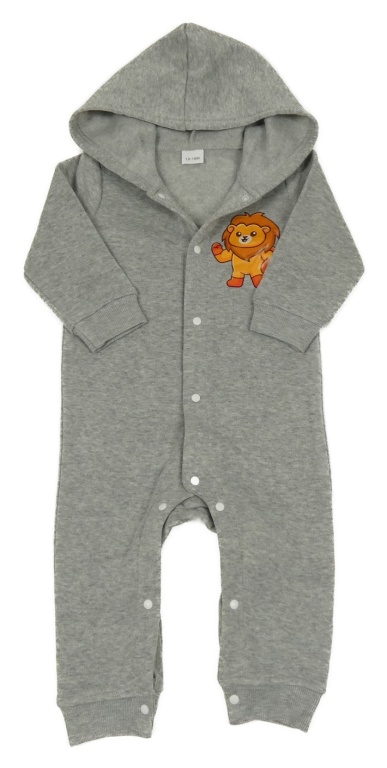 Šedá melírovaná tepláková kombinéza se lvíčkem a kapucí