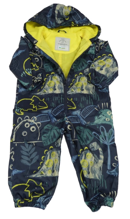 Tmavmodrá šusťáková jarní kombinéza s dinosaury a kapucí George