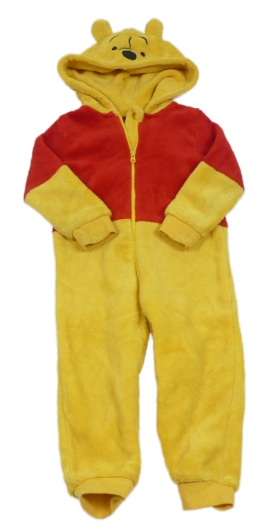 Červeno-žlutá chlupatá kombinéza s kapucí - Medvídek Pú Disney