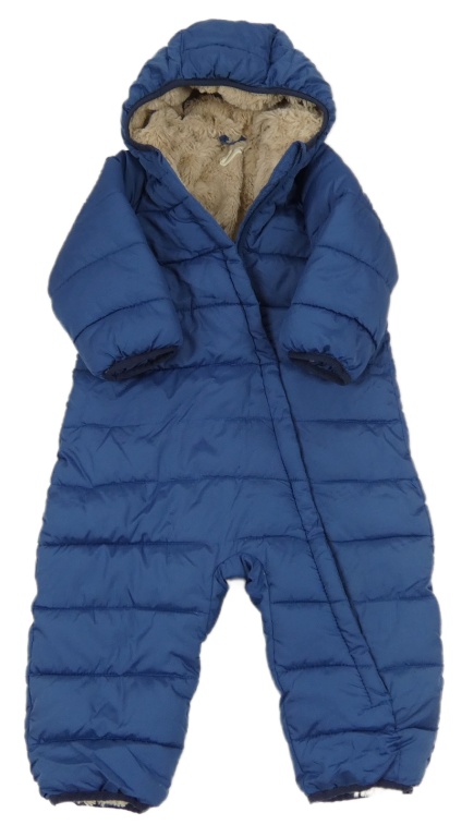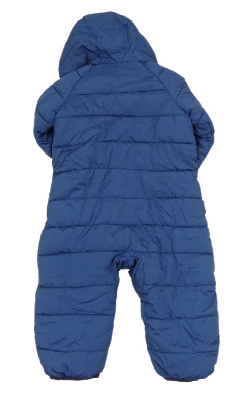 Modrá šusťáková prošívaná zimní kombinéza s kapucí