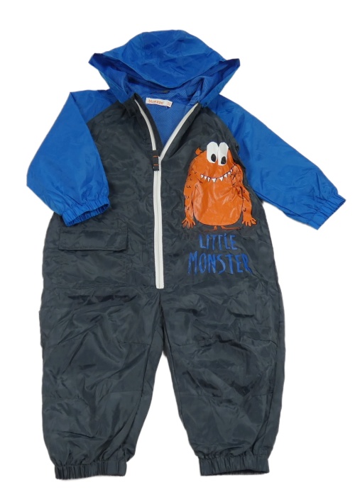 Tmavomodro-modrá šusťáková podzimní kombinéza s příšerkou a kapucí Bluezoo