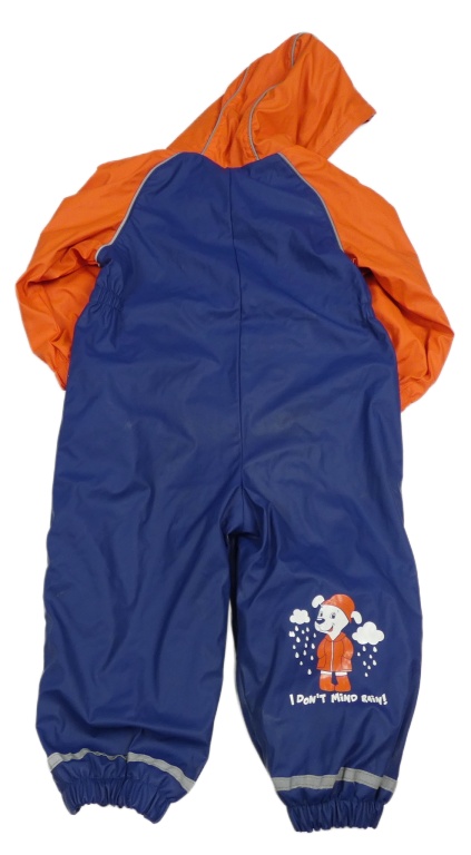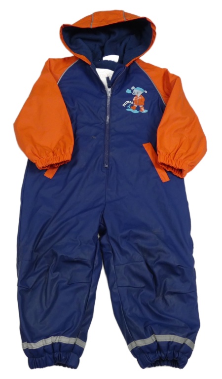 Tmavomodro-oranžová voděodolná podzimní kombinéza se psem a kapucí