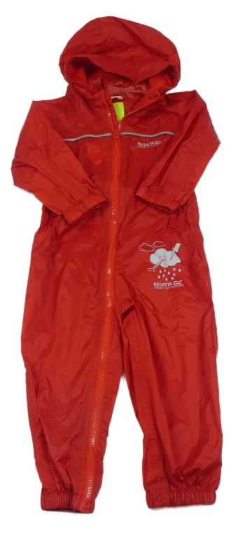 Červená šusťáková nepromokavá kombinéza s mrakem a kapucí Regatta