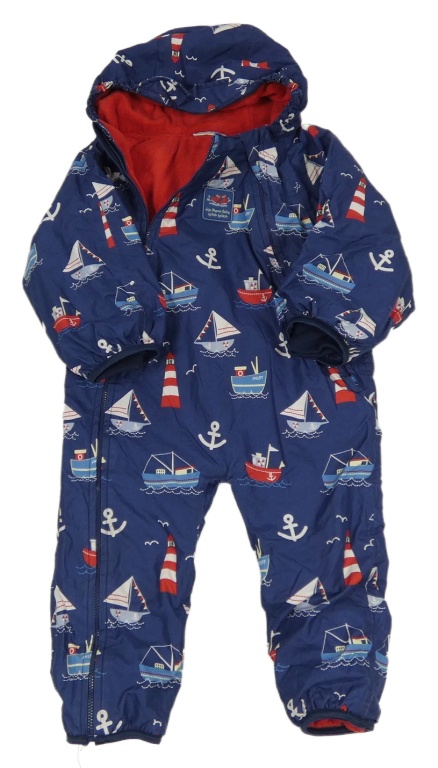 Tmavomodrá šusťáková zimní kombinéza s loďkami a kapucí Jojo Maman Bébé