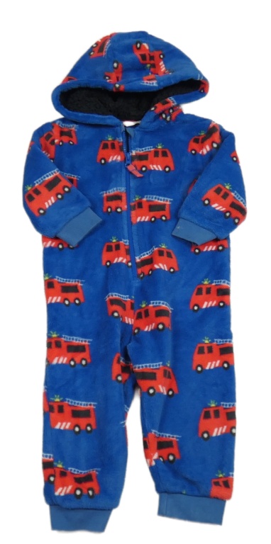 Modrá chlupatá kombinéza s hasičskými auty a kapucí M&S