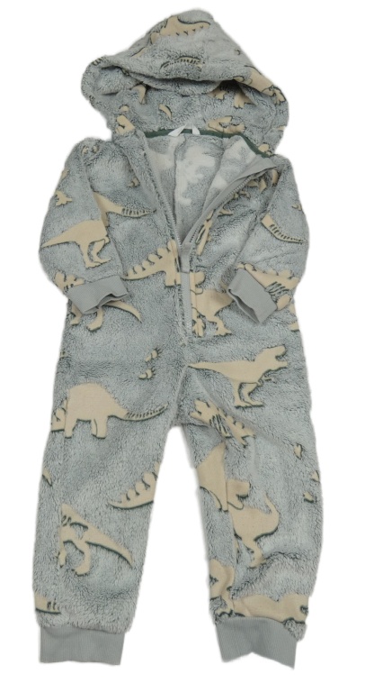 Bílo-zelená melírovaná chlupatá kombinéza s dinosaury a kapucí M&S