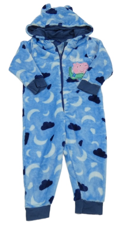 Světlemodrá vzorovaná chlupatá kombinéza Tomíkem a kapucí Mothercare