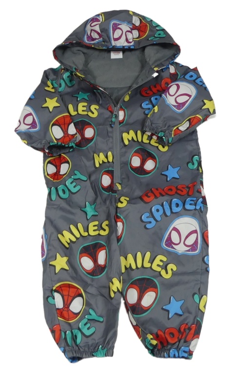 Šedá šusťáková podzimní kombinéza se Spider-many a kapucí George