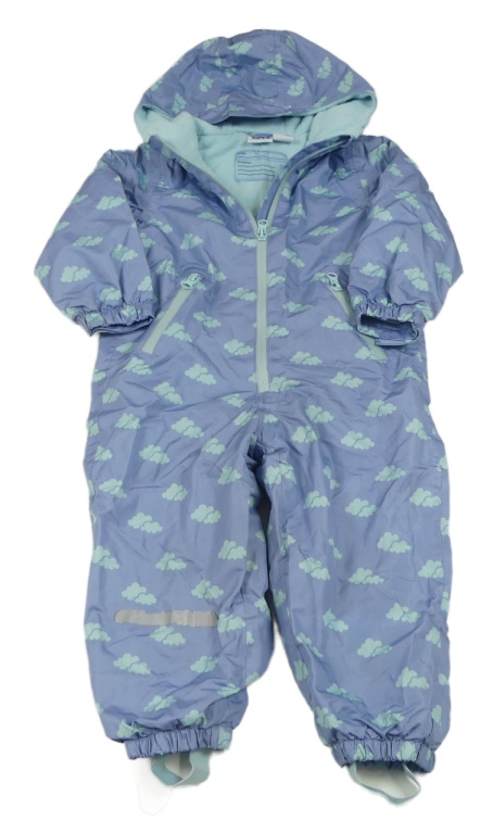Světlemodrofialová šusťáková podzimní kombinéza s obláčky a kapucí L&D
