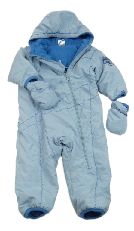 Světlemodrá šusťáková zimní kombinéza s kapucí + rukavice POCOPIANO