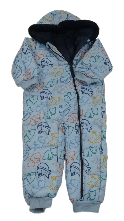 Světlemodrá šusťáková zimní kombinéza se zvířátky a kapucí Nutmeg