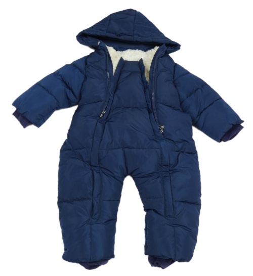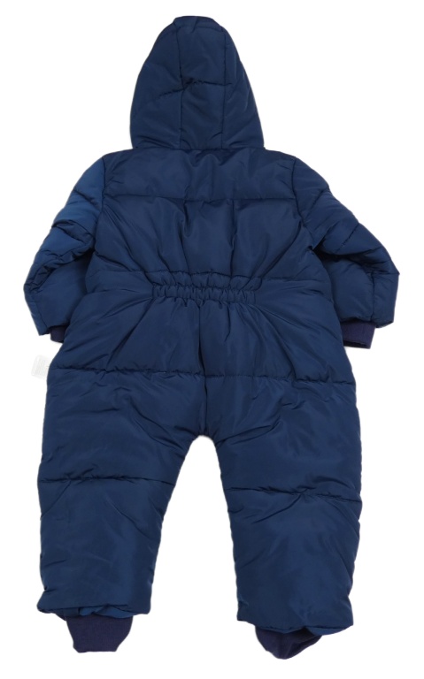 Tmavomodrá šusťáková prošívaná zimní kombinéza s kapucí
