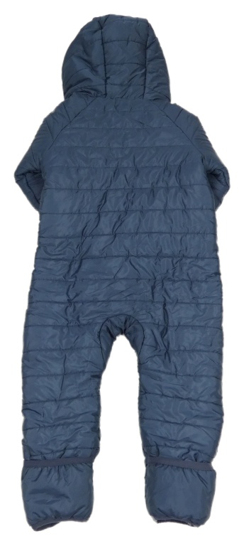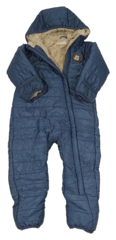 Tmavomodrošedá šusťáková prošívaná zimní kombinéza s medvědem a kapucí