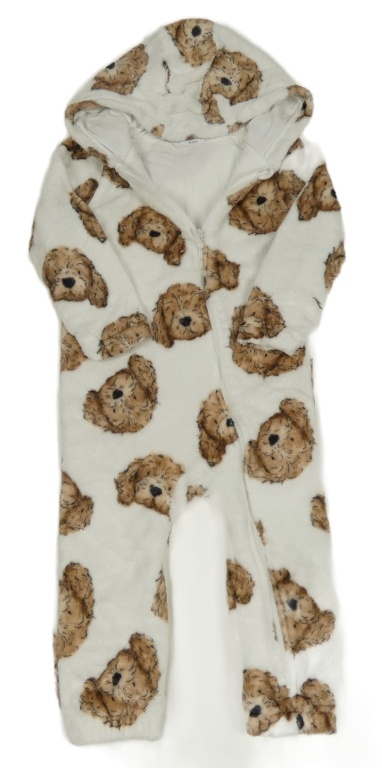Bílá plyšová podšitá kombinéza s pejsky a kapucí F&F