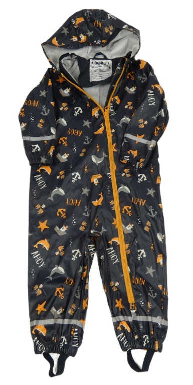 Tmavomodrá nepromokavá kombinéza s vodním motivem a kapucí Lupilu