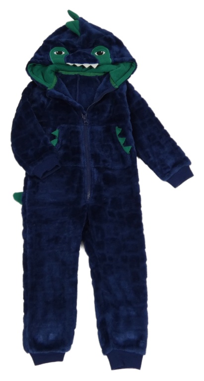 Tmavomodrá chlupatá kombinéza s kapucí - dinosaurus Nutmeg