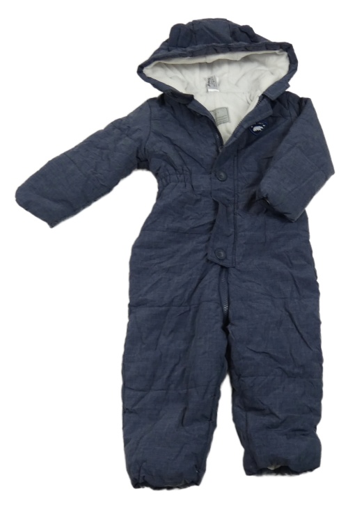 Tmavomodrá melírovaná šusťáková zimní kombinéza s nášivkou a kapucí C&A