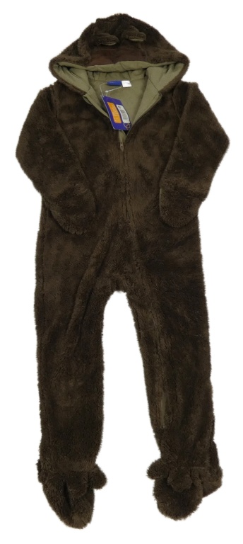 Nové - Hnědá chlupatá podšitá kombinéza s kapucí s oušky Lupilu