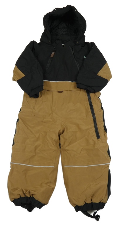 Černo-hnědá šusťáková zimní kombinéza s kapucí