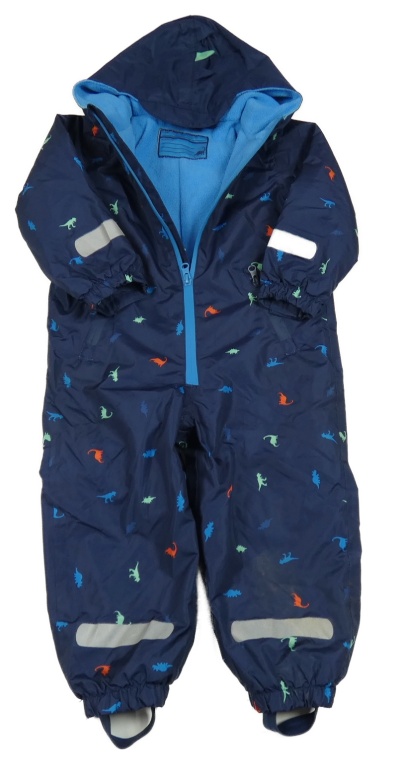 Tmavomodrá šusťáková jarní kombinéza s dinosaury a kapucí impidimpi