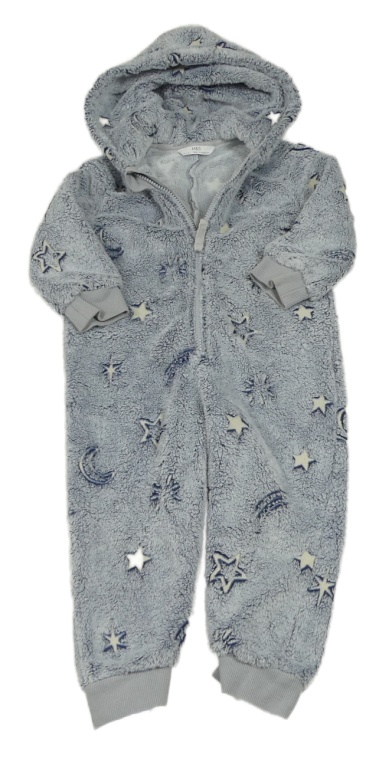 Tmavomodrá melírovaná chlupatá kombinéza s hvězdami a kapucí M&S