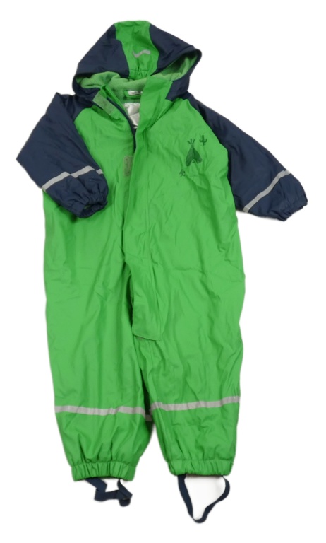 Zeleno-tmavomodrá voděodolná podšitá kombinéza s teepee a kapucí