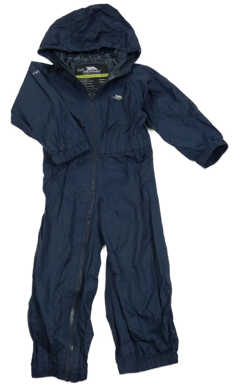 Tmavomodrá šusťáková funkční kombinéza s logem a kapucí Trespass