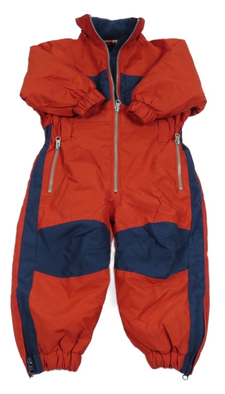 Červeno-tmavomodrá šusťáková zimní kombinéza