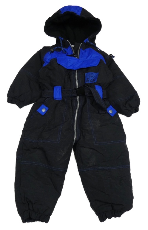 • Černo-safírová kostkovaná šusťáková zimní kombinéza s nášivkou a kapucí a páskem gelati