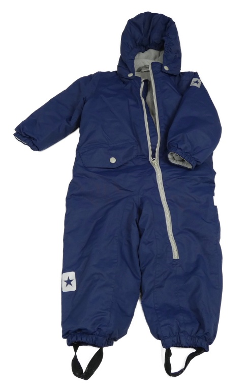 Tmavomodrá šusťáková zimní kombinéza s kapucí