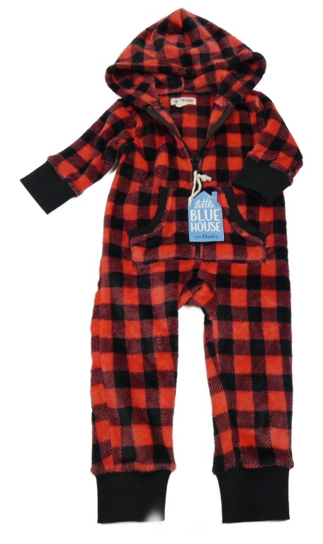 Nové - Červeno-černá kostkovaná chlupatá kombinéza s kapucí