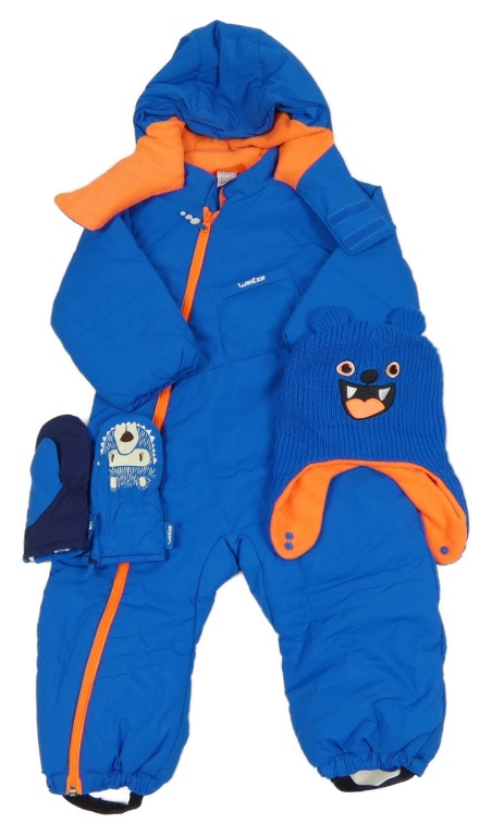 3set - Modrá šusťáková zimní kombinéza s kapucí + čepice + rukavice Wed´ze