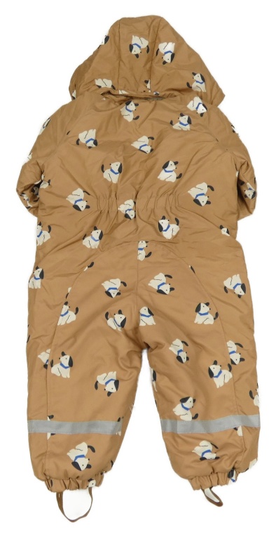 Hnědá šusťáková zimní kombinéza s pejsky a kapucí H&M
