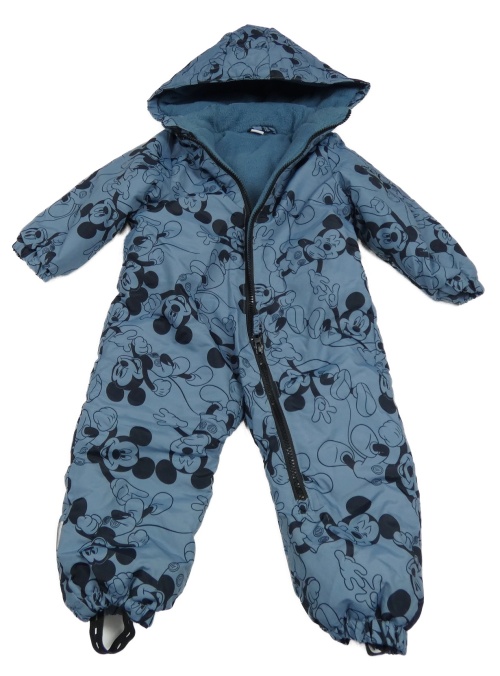 Modrošedá šusťáková zimní kombinéza s Mickeym a odepínací kapucí Disney